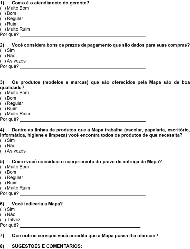 É de extrema importância que as empresas percebam como o marketing é essencial para a sua sobrevivência no mercado atual, pois através dele cria-se uma relação não só de troca de valor com o cliente como também uma relação de valorização por ambas as partes, uma troca mútua de benefícios. Este trabalho tem como objetivo analisar através de uma pesquisa de marketing, a satisfação dos clientes atendidos pela empresa Mapa Materiais de Escritório Ltda, buscando soluções para o seguinte problema: Como otimizar a área de vendas por telemarketing da empresa, fidelizar os seus atuais clientes e como conquistar novos? Através de livros sobre marketing e pesquisa de marketing, foi possível construir um referencial teórico que demonstra essa importância tanto em relação ao cliente quanto em relação à empresa. Além disso, o estudo também descreve o passo a passo da pesquisa de marketing desde conceitos até a explanação dos resultados obtidos. Conclui-se então, que a pesquisa de marketing é também parte fundamental para o sucesso de toda empresa, pois através dela podem-se avaliar fatores importantes como, por exemplo, a qualidade do atendimento, dos produtos e principalmente como está à relação entre cliente e empresa. Este trabalho abordará a partir de sua introdução, um referencial teórico abordando temas como o marketing, a pesquisa de marketing, a satisfação de clientes e o telemarketing. Após, será descrita a metodologia utilizada, o desenvolvimento do estágio realizado e por fim, as considerações finais.